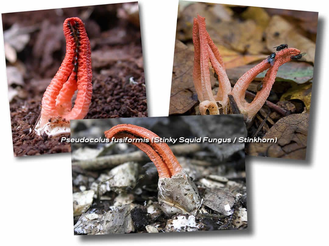 4. Pseudocolus fusiformis (Stinky Squid Fungus)
